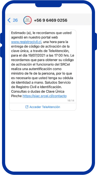Servicio que permite la TeleAtención de usuarios a través de las 38 sucursales del Registro Civil dispuestas a lo largo del país.